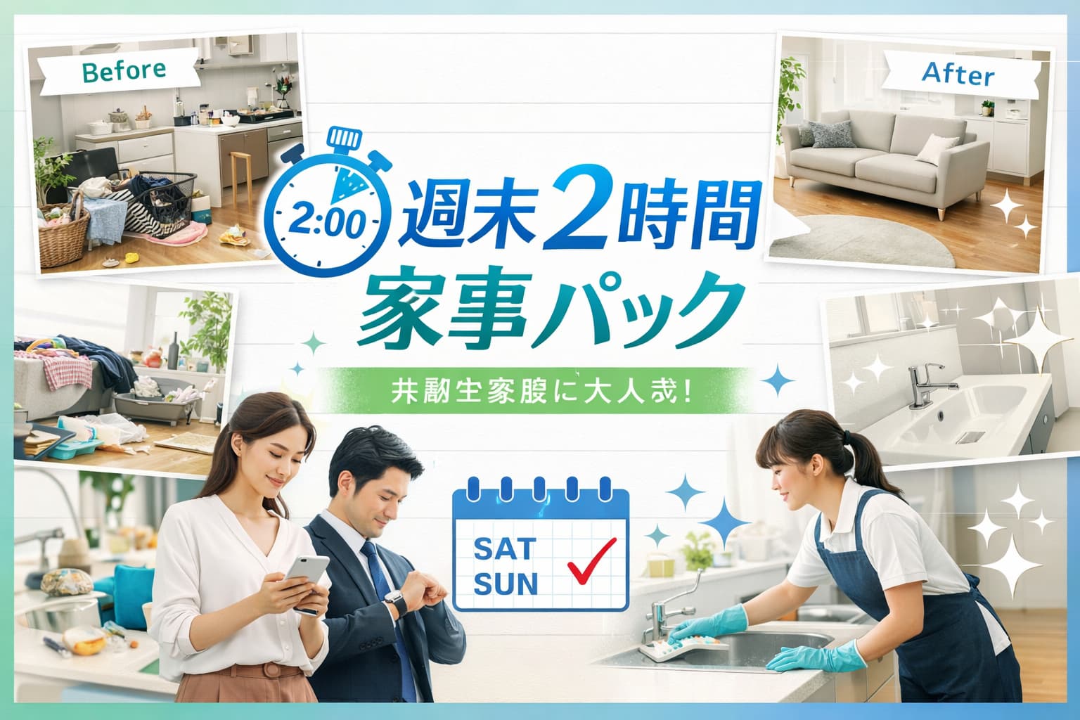 家の中が整うことで心にも余裕が生まれ、週明けからのエネルギーも高まる。そんなポジティブなサイクルをつくるきっかけとして、「週末2時間の家事パック」は、今後さらに注目されていくことでしょう。